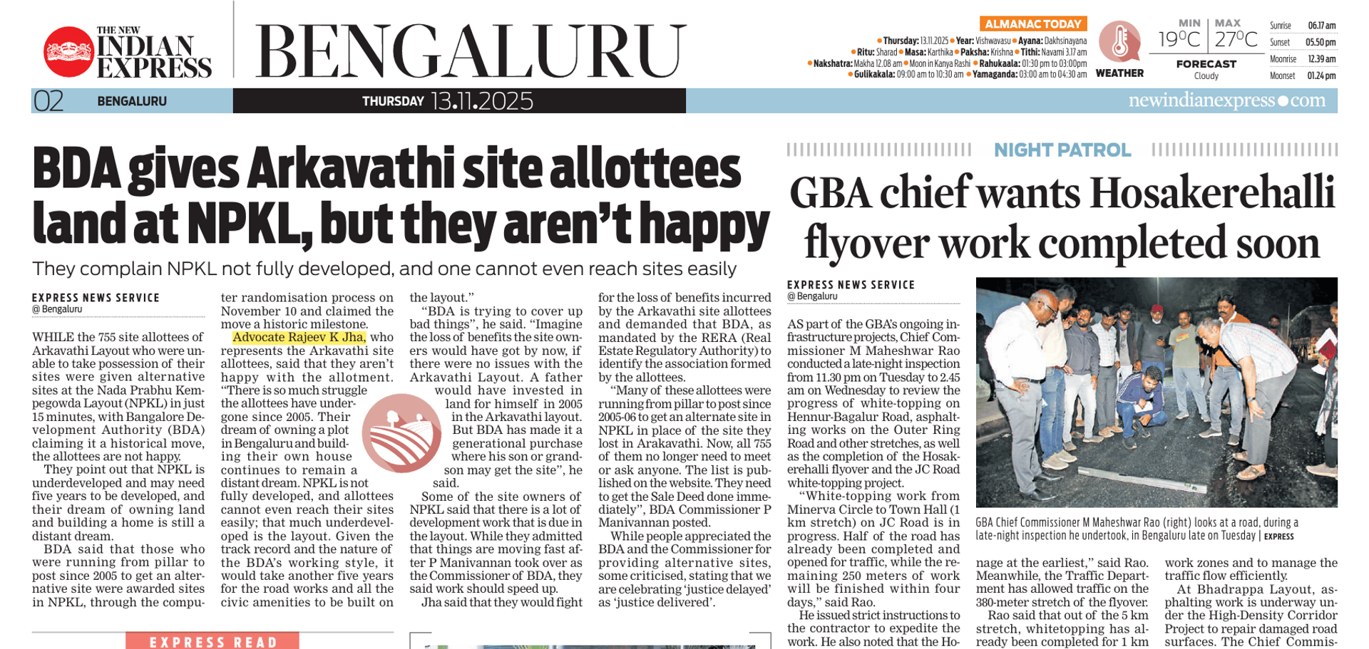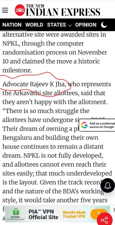 Article Published on : Arkavathi allottees get alternative sites in NPKL; call BDA’s move ‘justice delayed’
