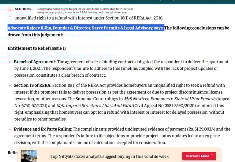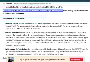 Click the link to read the complete article: Refund Case Judgement by Karnataka RERA